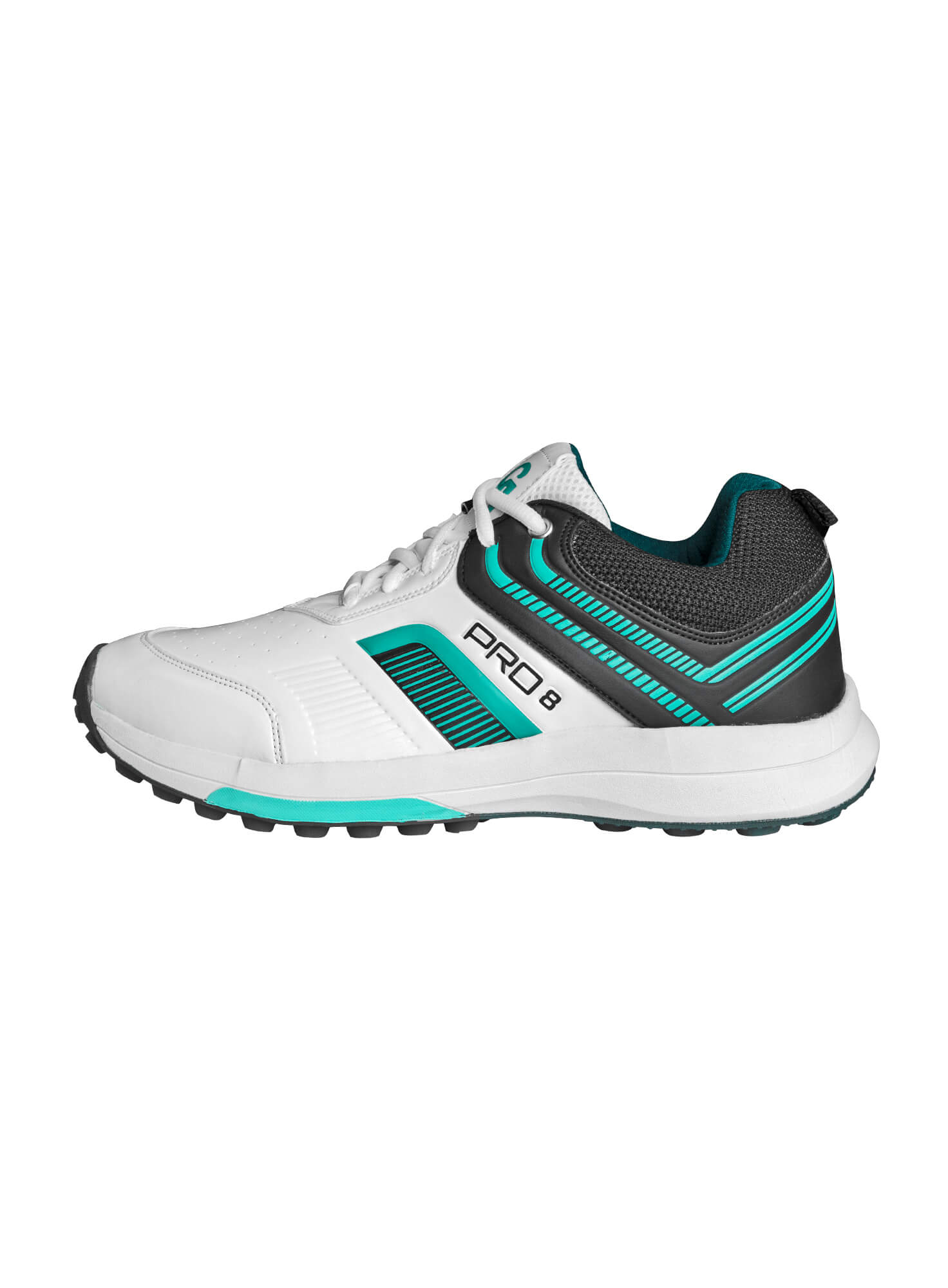 The CA Pro 8 Cricket Shoes are made from synthetic leather and are designed for better performance on the ground. These shoes provide a luxurious feel while maintaining long-lasting strength. Ventilation is enhanced with air vents and mesh inserts to keep your feet cool during extended play. A cushioned insole and padded collar add extra comfort, and the high-traction rubber outsole ensures stability on the field.