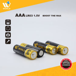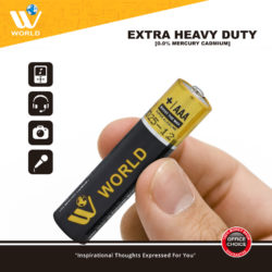 W World Alkaline Batteries offer a stable, continuous supply of small amounts of power to a variety of devices such as remotes, torch, wall clocks, and toys, etc. These are built with high-quality materials that`s why last longer than other brands. Ideal to use in a variety of temperatures, it is an efficient and low-cost solution for all devices that run on low power.