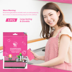 WBM home dish washing sponge scourer 5 pcs pack is ideal for all types of daily washing up and for wiping down surfaces. These versatile, strong, and long-lasting sponge scourer will help you efficiently clean the dishes. Made with anti-grease technology, these can stay clean for a long time. In addition to that, these are designed with contoured nail guards for improved grip and protection.